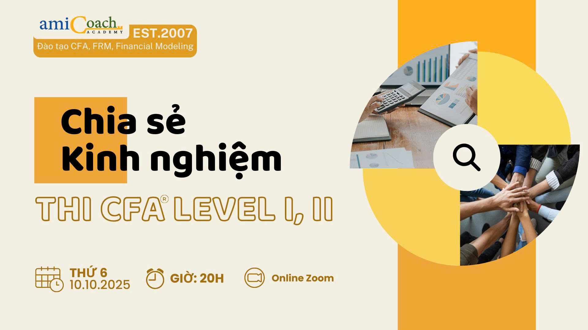 Workshop chia sẻ kinh nghiệm thi CFA, sự kiện dành cho các bạn đang chuẩn bị hoặc quan tâm đến kỳ thi CFA level I, CFA level II và CFA level III. Tham gia sự kiện, bạn sẽ được gặp gỡ, giao lưu trực tiếp với các bạn vừa hoàn thành xong kỳ thi tháng 8.2025 và moderator tuyệt vời của amiCoach: Cô Nguyễn Hoài Phương, CFA cùng các bạn học viên amiCoach. Đây là cơ hội bạn có thể lắng nghe, học hỏi kinh nghiệm từ hành trình học tập đến trải nghiệm thi cử của những bạn đi trước để có sự chuẩn bị sớm nhất và tốt nhất cho chính mình.