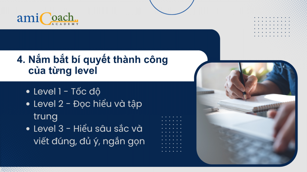 - Level 3 – Hiểu sâu sắc và viết đúng, đủ ý, ngắn gọn