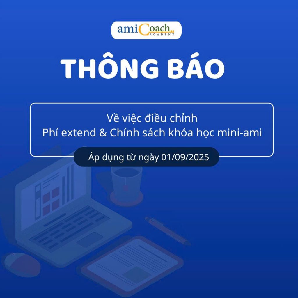amiCoach thông báo, kể từ ngày 01/09/2025, phí extend và thời gian học khóa mini-ami sẽ được điều chỉnh như dưới đây: